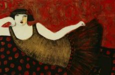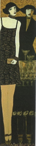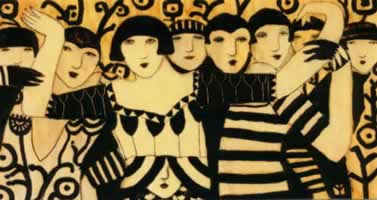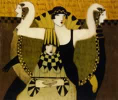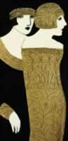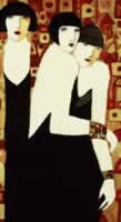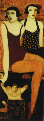 Gallery Triple Portrait with Clown in a Box Triple Portrait in Iridescent Gold font> The Audition font> Eventails: The Arrival font> Cocktail Dress with Blooms 2 Cocktail Dress with Blooms Four Women Seated Dancers Greta and Valentina - For Sale: $1800 Baby Wendy 2 Black Hat Women in Evening Dress Kisses 50¢ #VII Kisses 50¢ "Wall" Three Women Crimson Triple Portrait Small Double Portrait Two Women in Gold Leaf Frocks Dancer with Attendant Five Women Girl in Black Hat Sisters in Black and Gold Three Women in Crimson Gold Mosaic Woman in Crimson Small Silver Portrait Petite Dancer Lili Montage Bridal Arrangement Olive Dance of Gudrun and Ursulla Four Women Ivory Mosaic Portrait Les Femmes Superflues in Bronze Mosaic Lili Montage I Reclining Bronze Figure Bridal Waltz Charcoal Portrait Romaine Roxanne Conterie of 8